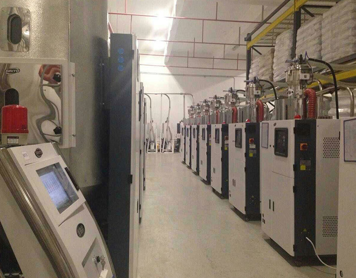 中央供料系統(tǒng)采用原料集中儲(chǔ)存和管理,使得原料區(qū)與成型區(qū)完全分開,操作空間大。