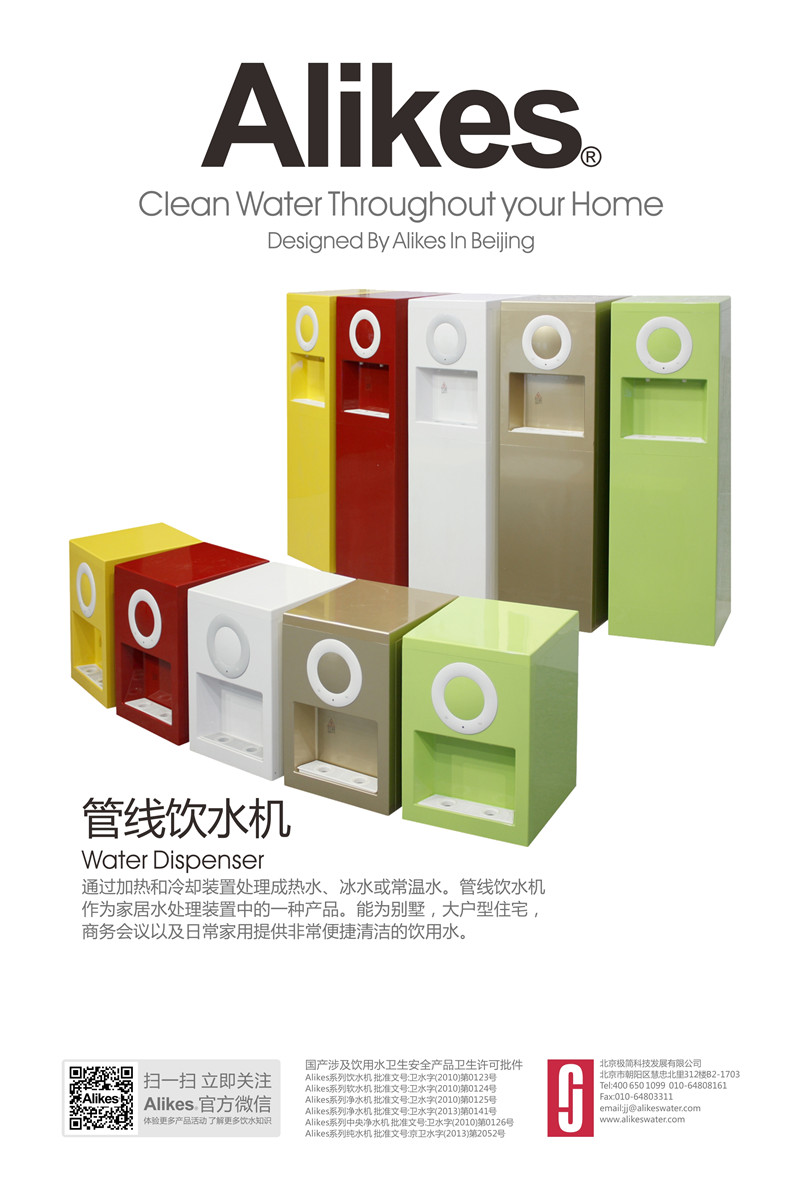 Alikes管線機可配合終端凈水機使用,也可以利用自帶的濾芯(選配)進行水處理凈化。凈化后的水經(jīng)PE輸水管連接到機內(nèi)的密閉儲水罐,通過加熱和冷卻裝置處理成熱水、冰水或常溫水。管線飲水機作為家居水處理裝置中的一種產(chǎn)品,能為別墅、大戶型住宅、商務(wù)會議以及日常家用提供非常便捷清潔的飲用水。